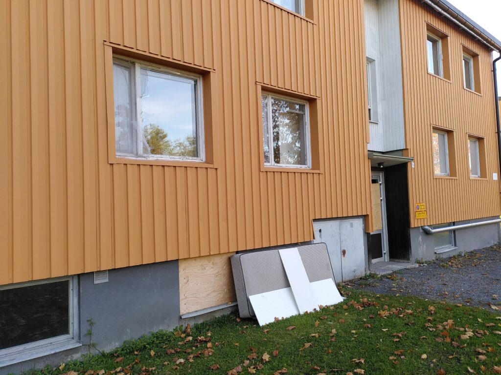 Vi har inte tänkt nämna några namn, men vi hoppas verkligen att de som skapat skamfläcken har förstånd att skämmas ögonen ur sig. Bilderna nedan, tagna idag, talar för sig själva. Minns att detta är en fastighet i Ånge kommuns ägo. Det handlar inte om oklara ägarförhållanden. Det handlar inte om en privat hyresvärd på obestånd. Det är Ånge kommun det handlar om – ingenting annat.